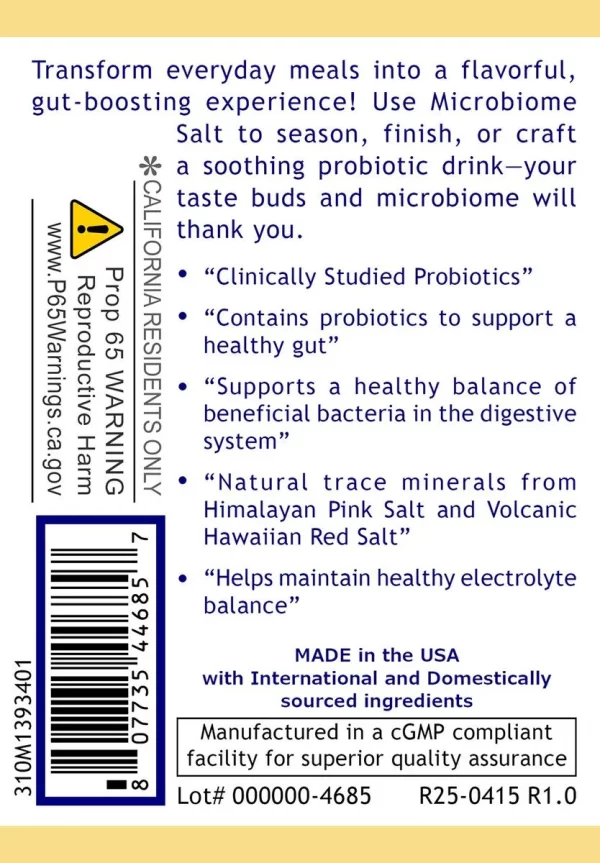 Transform everyday meals into a flavorful gut-boosting experience! Use Microbiome Salt to season, finish, or craft, a soothing probiotic drink– your taste buds and microbiome will thank you.