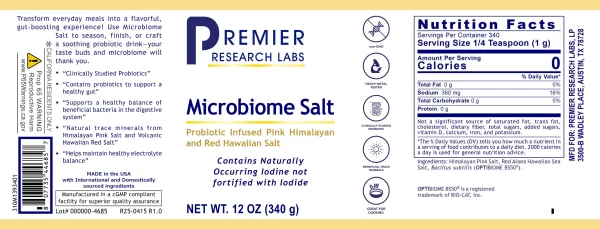Microbiome Salt is a functional salt blend formulated to support gut and immune health through daily use. It combines two unrefined, mineral-rich salts (Himalayan Pink Salt and Red Alaea Hawaiian Sea Salt) with BS50®, a clinically studied strain of Bacillus subtilis. This spore-forming probiotic is known for its ability to survive heat, gastric acidity, and long-term storage without refrigeration.