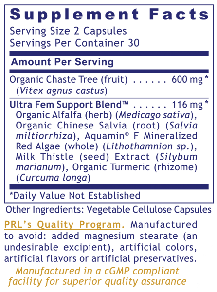 Some female support products feature large amounts of a single ingredient such as dong quai or vitex. The biochemistry of the female, however, is designed such that the matrix of each cell really seeks small amounts of hundreds of different phytonutrients in order to function at its ideal cellular resonance.