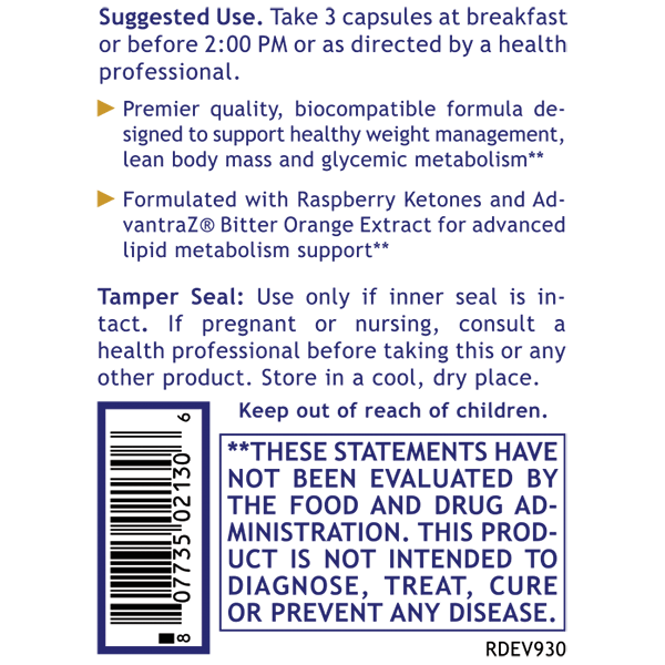 • Formulated with Raspberry Ketones and AdvantraZ Bitter Orange Extract for advanced lipid metabolism and fatty acid oxidation