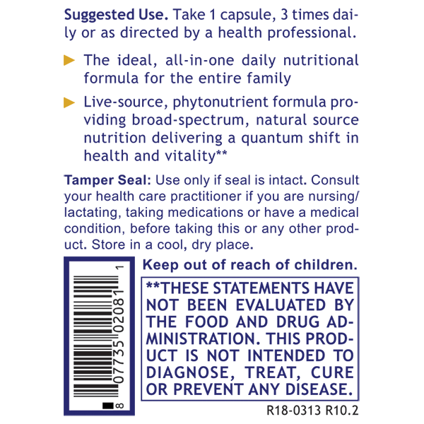 This ideal, daily nutritional formula for the entire family is a once-living phytonutrient formula. This all-in-one supplement provides broad spectrum, premier nutrition delivering a quantum shift in energy, health and vitality.