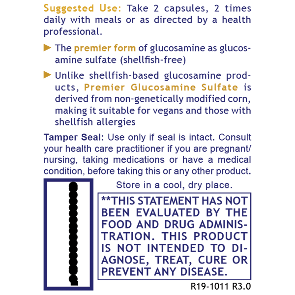 Premier Glucosamine provides the premier form of glucosamine as glucosamine sulfate (shellfish-free), which promotes targeted joint, ligament and connective tissue support. This product may be used alone or in conjunction with OsteoVen™, a broad spectrum bone and joint formula.