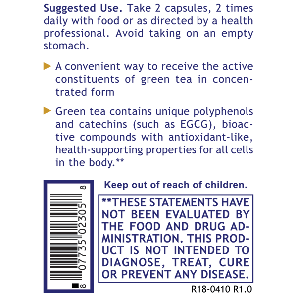 Now available in a convenient, easy-to-swallow capsule form in scientifically demonstrated concentrations. One capsule of Premier Green Tea Extract (98% polyphenols) contains green tea standardized to 45% EGCG (epigallocatechin gallate), scientifically demonstrated to exhibit potent free radical neutralizing properties. Taking four capsules daily supplies 320 mg of EGCG.