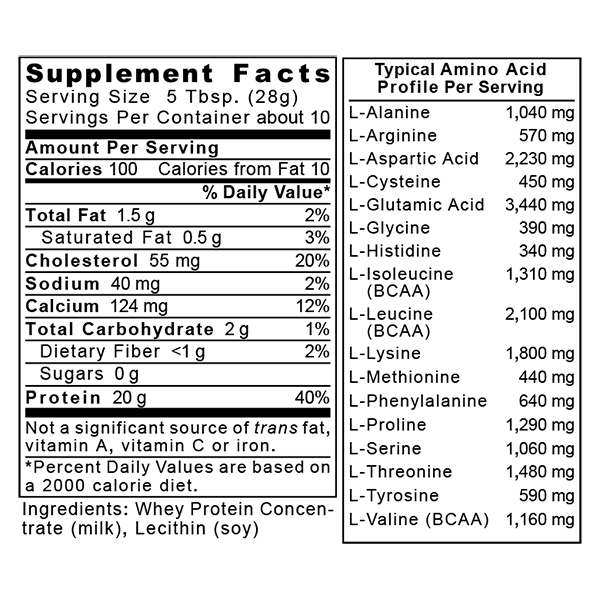 Ingredients: Whey Protein Concentrate (milk), Lecithin (soy)