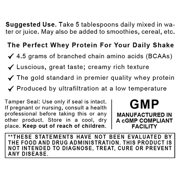 Now, you can get all the great benefits of whey protein in Premium Whey Protein, one of the only whey proteins produced using ultra-low heat. It is produced using ultrafiltration at a very low temperature to preserve the broad array of protein molecules, including naturally occurring glycomacropeptides (GMPs).